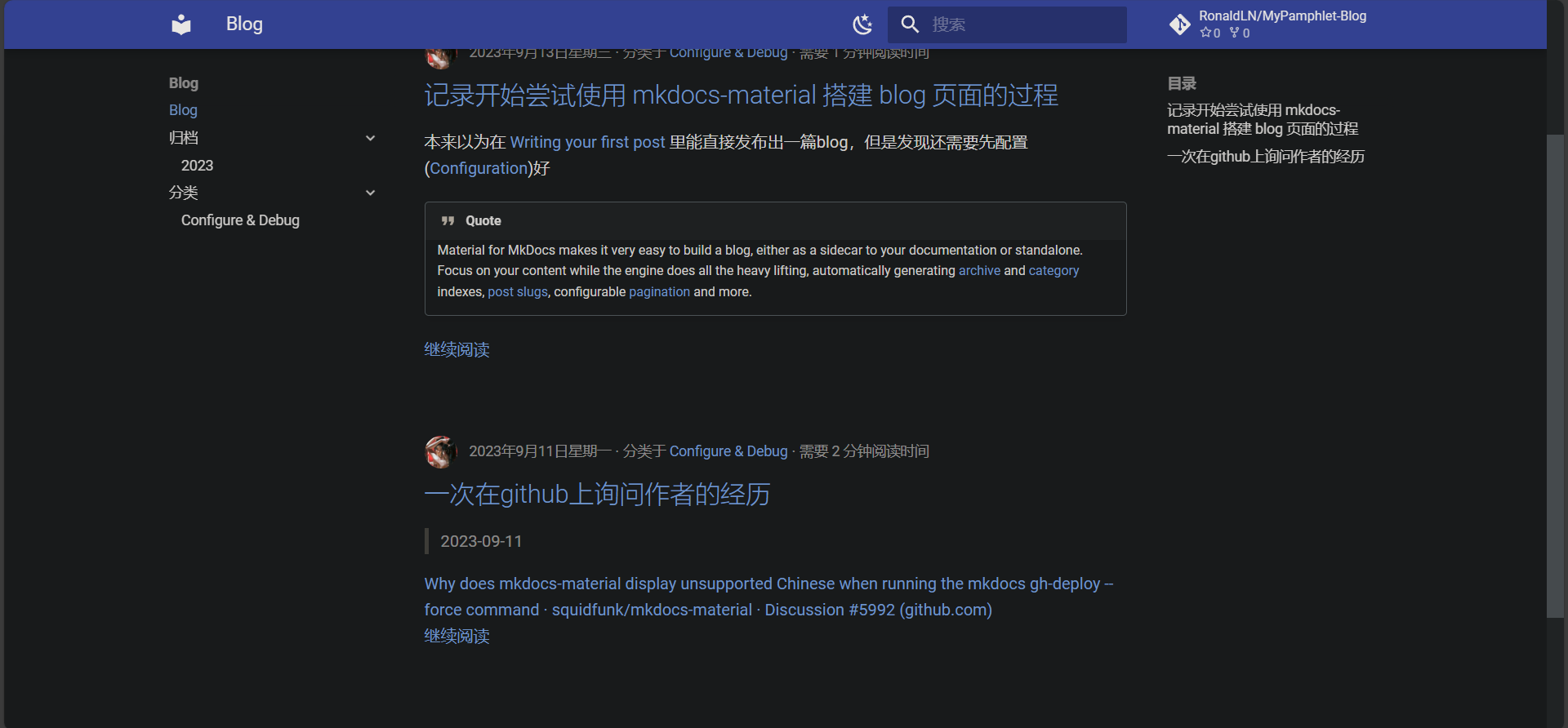 记录开始尝试使用 mkdocs-material 搭建 blog 页面的过程¶