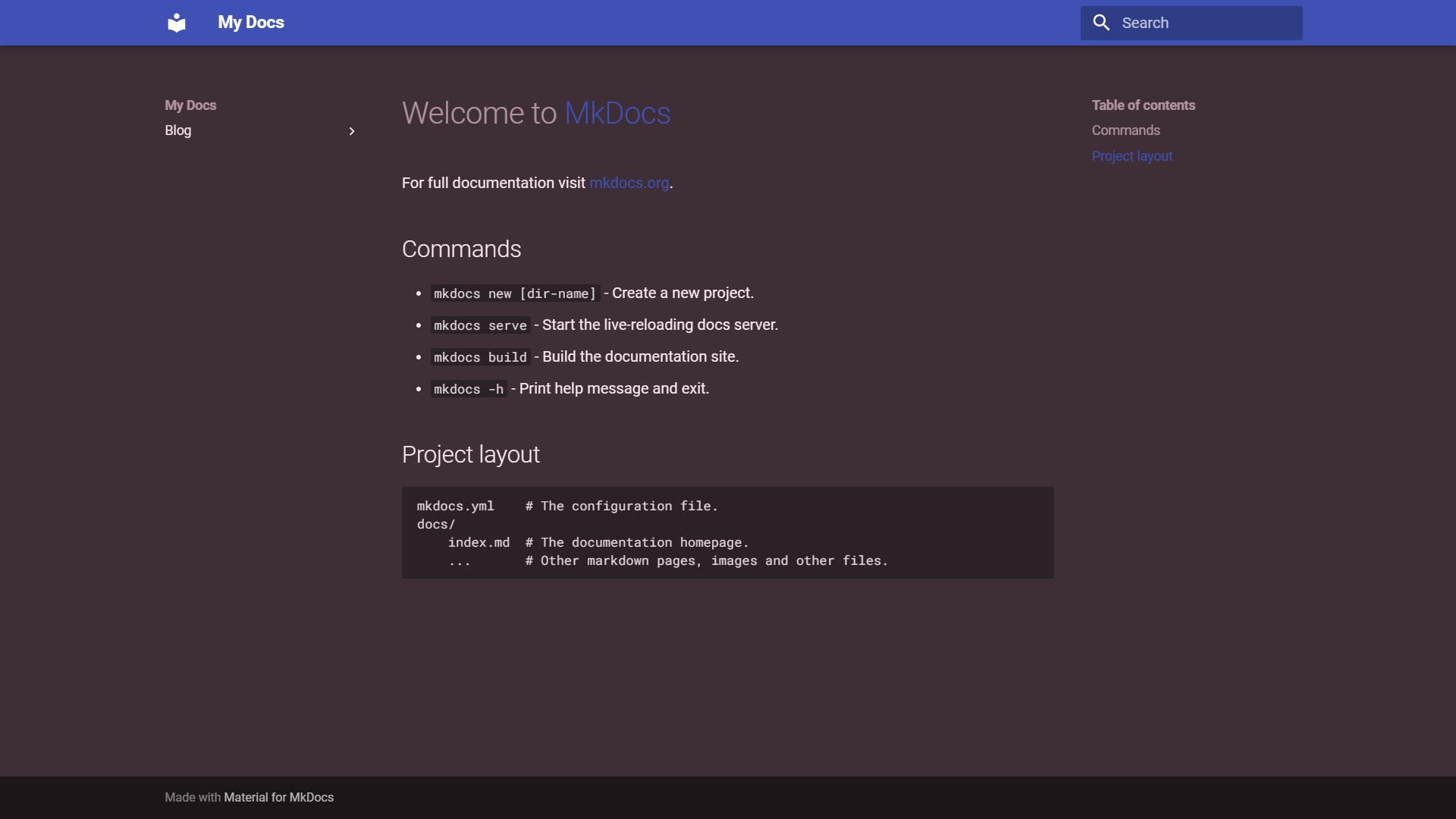 如图中的 MkDocs